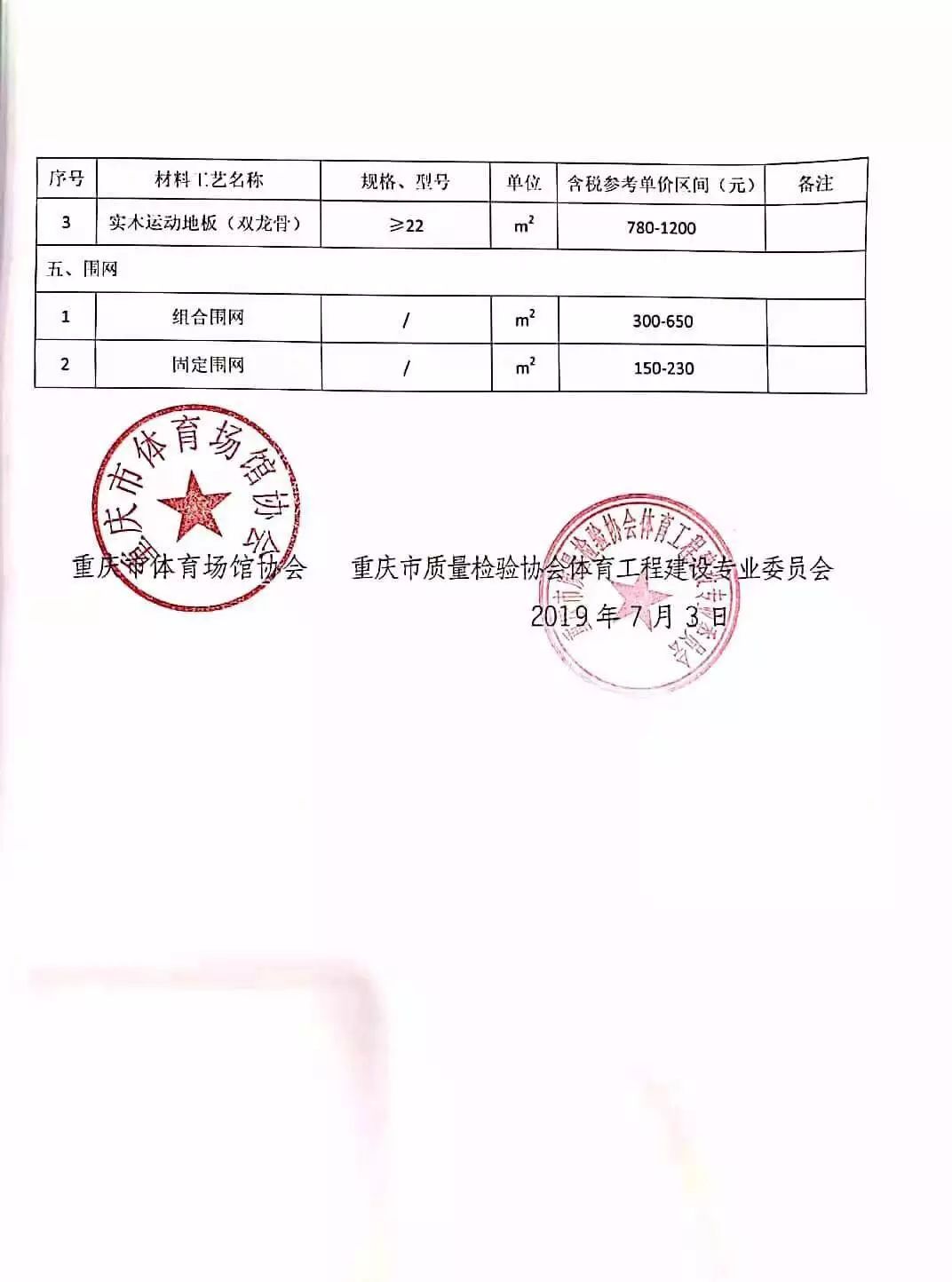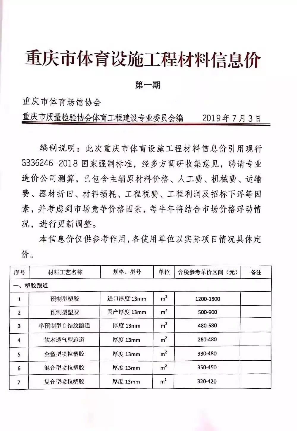标题: 重庆市2019年第一期《体育设施工程材料信息指导价》正式对外发布