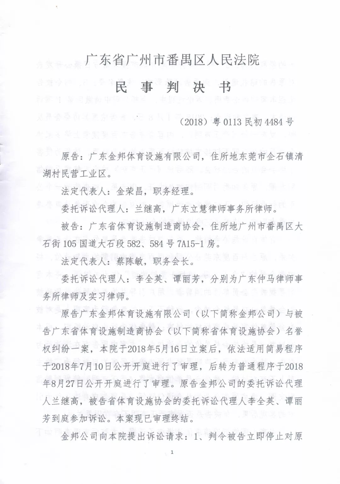 广东金邦体育设施有限公司诉广东省体育设施制造商协会侵 ...