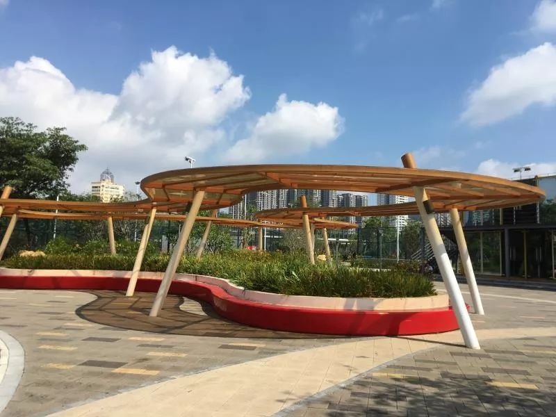 ▼此外,“网球主题”社区公园在珠海首次尝试空中网球观景长廊设计,该长廊外观动感活力,登上长廊,一眼望去,中珠社区公园尽收眼底,多个球场一眼览尽。