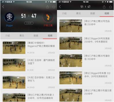 直播过程中,app该场比赛下实时更新赛况、球员数据以及每一个得分镜头视频。