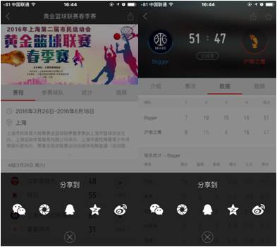 通过app可进行联赛信息的分享,让更多人看到你的精彩比赛