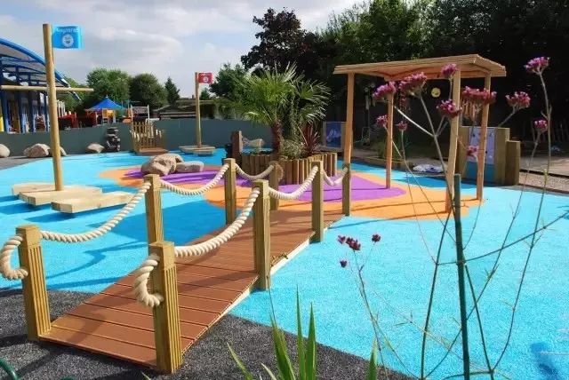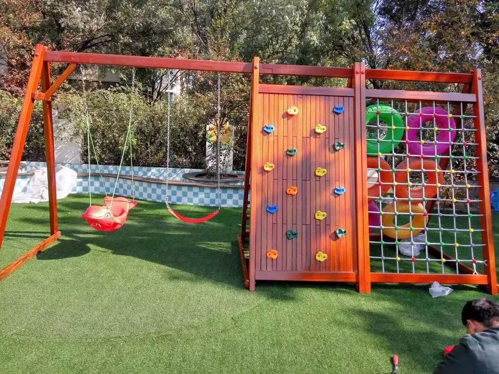 通过器械运动区中各种色彩鲜艳,造型奇特的器械,引导儿童去攀爬、滑行或摇荡等,同时,将游乐设施连在一起,儿童的兴趣就会被串起来,小朋友们共同玩一套设施,将会增强儿童之间的交往机会,提高其社交能力。