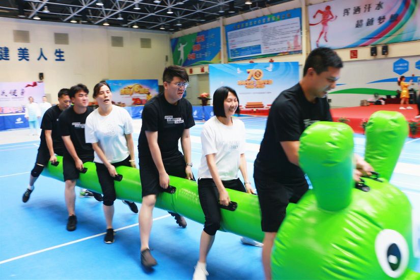 此次体育嘉年华活动吸引了来自区内机关各大办、事业单位集团公司和各社区等共18支队伍和百余名群众参加了比赛活动设置了快跑毛毛虫、众星捧月合力搭建三个团体项目和四个个人项目集趣味性、娱乐性、协作性和挑战性于一体虽然场外气温很高但是场内运动员们的热情不减个个聚精会神、相互配合无不展示他们的运动风采团体赛