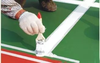 2、用美纹纸沿线位两边粘贴,中间预留宽度尺寸应符合球场的界线宽度要求。