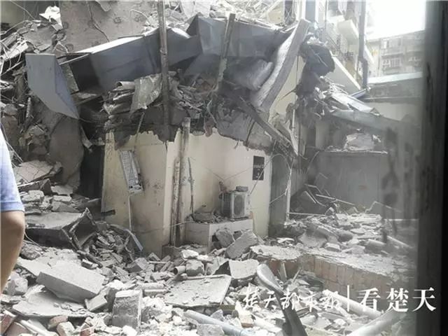 记者无法走进现场,通过目击者拍下的视频可以看到,楼下一片混乱,一至三楼有不同程度的垮塌。