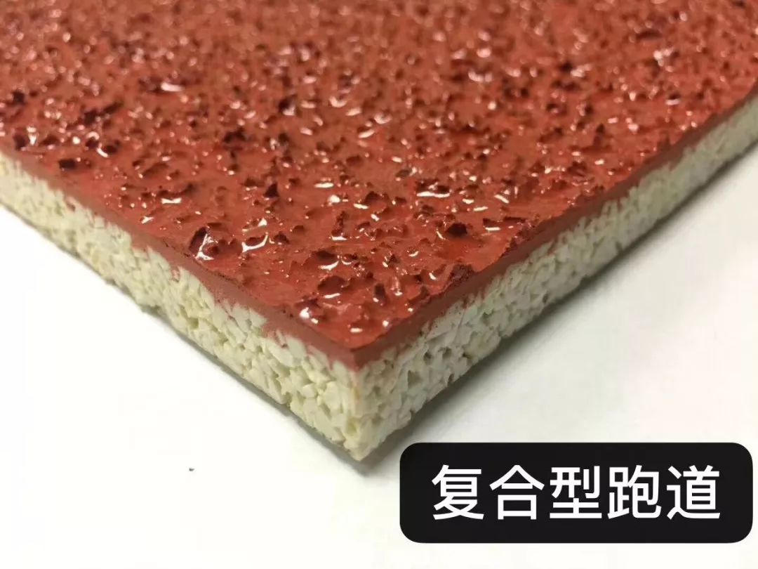 透气型跑道国际标定为训练场,不适宜上钉鞋跑道。 新国标复合型聚氨酯塑胶跑道 复合型塑胶跑道表面采用特殊聚氨酯混合浆料喷涂在混合型弹性层上,其表面层聚氨酯混合浆料中在喷涂雾化的过程中迅速固化,使表面形成不规则的桔纹形,具有较好的表面排水功能,高寒地区的雨雪进入不到塑胶跑道的弹性层中,即使气候回暖后跑道坡度亦能自然排水,对跑道功能不受影响。是高寒地区各类田径运动场地首选。 新国标混合型聚氨酯塑胶跑道 混合型塑胶跑道是一种新型高分子合成跑道材料,采用混合结构,面层为PU颗粒或EPDM耐候性环保彩色颗粒,母体是全PU掺合部分橡胶颗粒。它具有高强度、弹性好、耐磨、防滑、平整和简便性等优点,目前被评为公认的最佳体育地面使用材料,符合国际赛事标准。