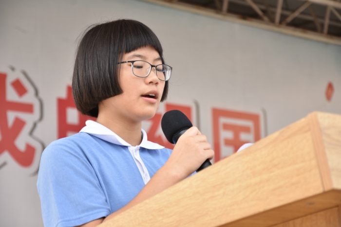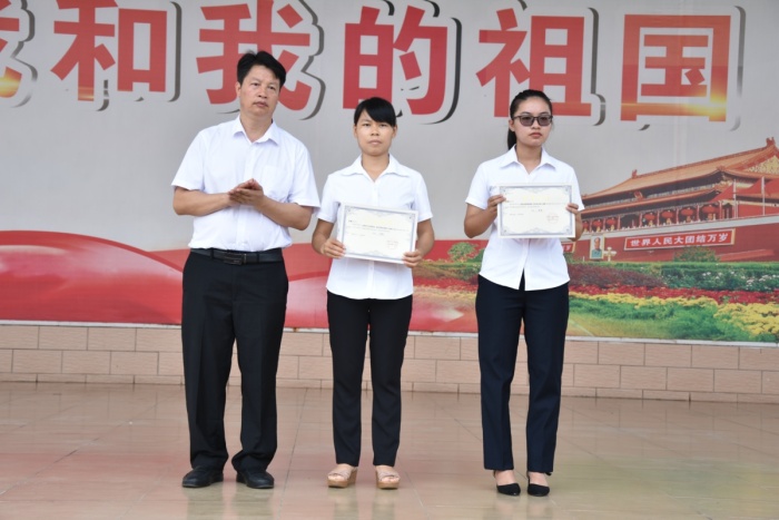 “起来!不愿做奴隶的人们——”全校近3000名师生齐唱国歌,五星红旗冉冉升起,庆祝教师节暨表彰大会在庄严的升旗仪式中拉开了序幕。学生代表雷荟美同学激情演讲,表示在新的学年将会勤奋刻苦,努力拼搏,不辜负家长、老师们的殷切期望,并深情表达了对老师的感恩,对同学的激励以及对全体老师的节日祝福。办公室吴良成主任宣读表彰决定,对在2019学年度教育教学中成绩优异的优秀少先队辅导员、优秀班主任、优秀教师、优秀教育工作者共35位老师进行了表彰,学校黄元感校长及主要行政领导为获奖教师进行了颁奖,感谢他们在过去一个学年的倾情付出,成就学校荣光。
