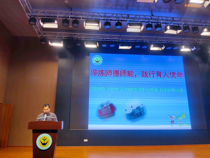 为进一步推进浪网小学师德师风建设工作,积极倡导高尚的师德师风,提高教师的职业道德素养,规范教师的从教行为,进而教给学生正确的思想,引导学生走正路,立德树人。9月11日下午,浪网小学组织全体教师在阶梯室开展了2020学年师德培训活动,培训主要内容是思政课的落实。