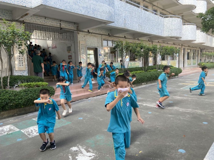 演练前,总务主任梁兆元老师对演练进行了精心的组织和周密的安排,详细规划了每个班级的集合区域以及楼层、走廊的看守老师。此外,梁主任还对全校师生进行了详细的消防安全基础知识讲解培训。下午3点45分,随着消防警报的响起,还在教室上课的同学们在老师的指导下,按照应急预案,纷纷用手帕捂住嘴,弯着腰,沿着学校指定楼梯通道快速、有序地撤离到学校运动场的安全地带。整个过程仅用了短短几分钟,做到了安全、快速、有序。接下来,开发区消防大队的顾警官,结合了今天演练的情况,就如何报火警、火灾的预防、火场自救及逃生方法、灭火器的使用等消防安全知识进行了讲解;最后,民众镇消防中队队员现场指导师生们学习使用灭火器进行灭火。