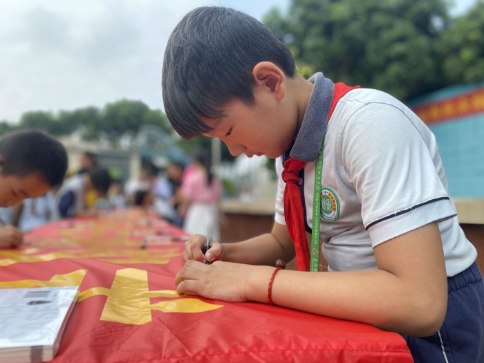 启动仪式的高潮在朗诵国学经典。政教处陈七灵干事带领同学们朗诵国学经典,各个年级的同学热情高涨,声音嘹亮。朗诵结束后,各班主任老师带领5位同学进行签名留念。