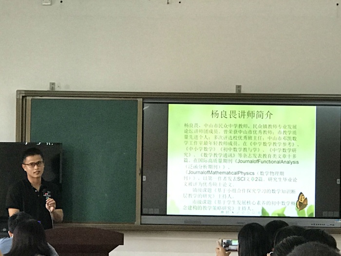 2020年10月16日(星期五)于民众中学B405会议室开展民众镇教师专业发展论坛活动。主讲人是民众中学初二级数学科青年优秀教师杨良畏。参会人员有民众镇中小学对教学论文写作深感兴趣的老师们。杨良畏老师就《实例探究教研论文写作》(发表在《中学数学教学参考》)如何写好优秀论文进行详细讲解!以《万历十五年》魏忠贤钓鱼片段深入浅出阐述写论文注意抓住教学细节,进行文本细读与分析!杨老师妙语横生,深入浅出,精彩绝伦!其他老师的讲解也是精彩连连,让人叹为观止!