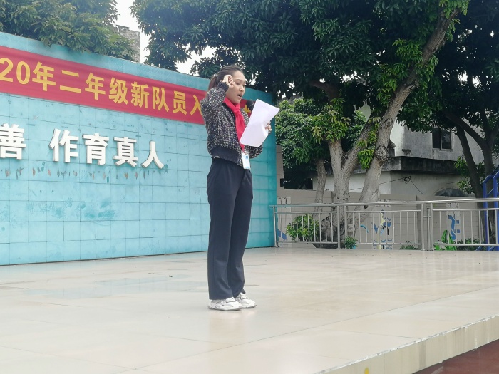 最后,在大队辅导员吴丝敏老师的带领下,少先队员们大声呼号:“时刻准备着!”,响亮的呼号声为本次入队仪式画上了圆满的句号。