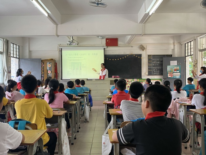讲座中,主讲赖老师先让同学们观看了关于“全国人口普查宣传视频”,谈谈自己的一些看法。接着,赖老师又声情并茂地向同学们讲解人口普查小知识,工作人员向同学们派发《致住户的一封信》和《人普宣传小册子》,并亲身示范展示普查员入户时的标准着装及流程。为了检验孩子们是否掌握好相关知识,开启了有奖问答环节,同学们纷纷举手抢答,回答问题又快又准。最后,老师鼓励同学们积极自觉地行动起来,从自身做起,积极宣传,让大家生活的地球变得更加美丽和谐。