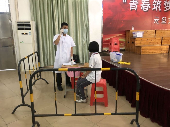 此次应急演练活动包含校门口师生员工入校检测体温演练、学生宿舍疑似疫情演练、课室晨午检演练和学生呕吐情况应急演练四个细化流程。