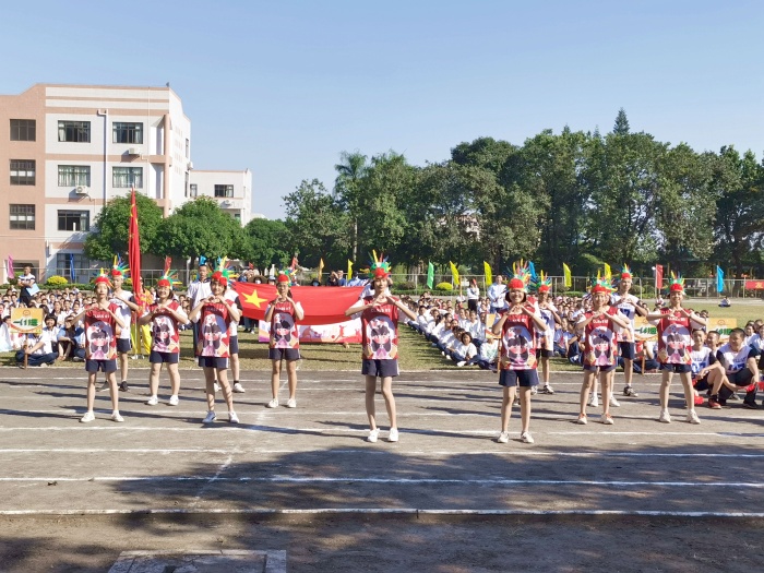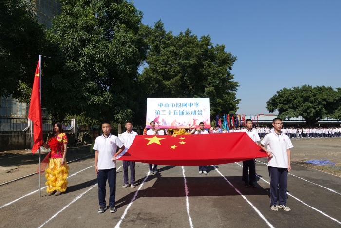开幕式尾声,在一场精彩的舞狮表演之后,全体师生面向国旗,唱响国歌。邱慎明副校长为校运会致辞,希望同学们在校运会中发扬拼搏精神,为班级争光。伴随着校园四周依次响起的爆竹声,杨铨标校长慷慨激昂地宣布第二十五届校运会正式开始。