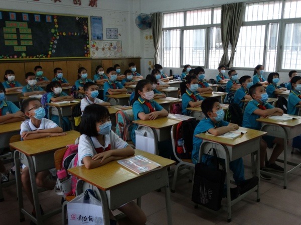 上午8点整,由于天气原因,全体师生在室内举行复学典礼。庄严的升旗仪式开始了,在雄壮的国歌声中,全体师生注目国旗,心怀崇敬与自豪,也满怀对新学期的美好期待。接着,邀请民众医院陈顺萍护士讲话,她与同学们分享了她在中山市第二人民医院参与抗击新冠肺炎工作时发生的两个小故事,并指导同学们在复学期间如何进行日常防疫。紧接着,民众中心小学德育处陈晓雄主任就学生返校后的“一日常规”发表了讲话,分别从上学前的准备、错峰上学与放学时间表、在校要求、回班级路线、家长关心的问题等几个方面向同学们讲解,确保复学有序与安全。