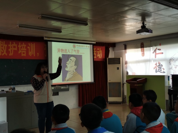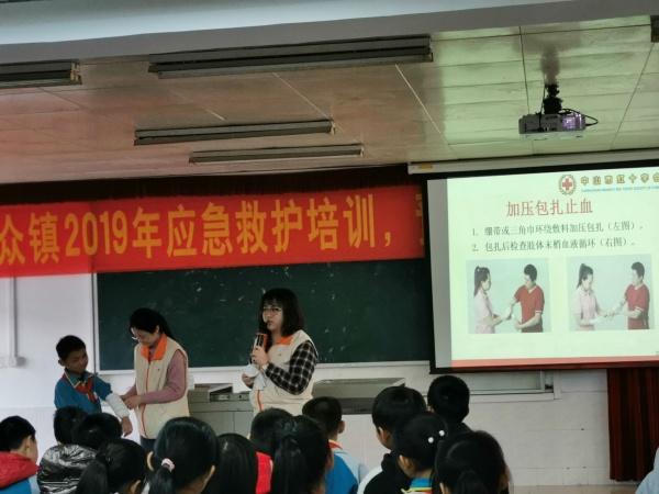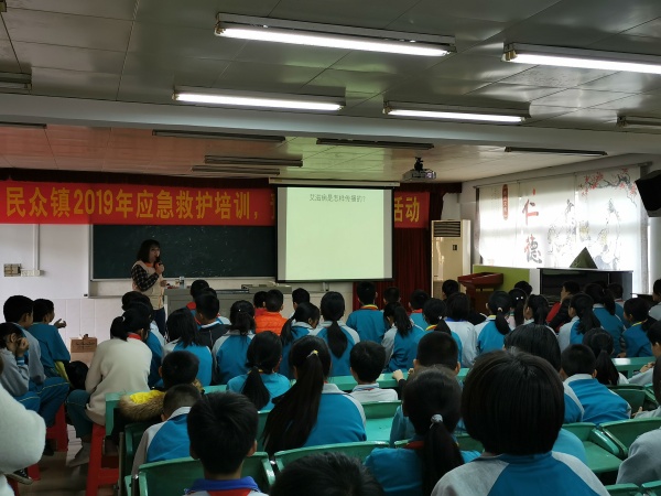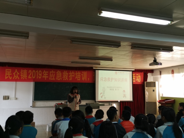 随着各种突发事件的发生,意外伤害事故也相应增多。由于人们缺乏救护知识,不少受伤人员在第一时间得不到救护处理,致使死亡率和伤残率增高。为了提高我校师生安全防范意识,普及应急救护知识,减少伤亡事故的发生,2019年12月9日下午,民众中心小学请来了中山市红十字会应急救护培训师,给六年级全体师生在学校阶梯室进行应急救护培训学习。