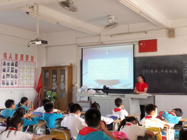 11月29日,民众中心小学的向英老师以《节约用水,从我做起》为主题作国旗下讲话。分析当前全球水危机的现状,改变孩子把水看成取之不尽、用之不完的观念,教会孩子一些节约用水的方法。接着,各班主任利用班会课进一步了解和学习节约用水的有效办法。借用PPT出示有关旱灾的地区,引导孩子进一步了解全球水危机的现状,从而引导孩子节约用水,保护水资源,掌握一些节约用水的技巧。例如:看到有人浪费用水,主动上前劝说;见到水龙头在滴水,应该随手关上。又如:做好水资源的再次利用,收集自己的洗脸水、洗衣服水来冲厕所;用淘米水洗菜,然后再用洗菜水浇花等,让节约用水得好习惯到处开花,成为一道优美的风景线。