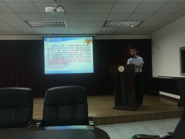 陈主任一开始就引用了魏书生的一段话:“班集体,学生成长于斯,变化于斯。在其中时,关心她,爱护她,为她吃苦,为她的荣誉而奋斗;离开她后,留恋她,想念她,回忆她,魂牵梦萦着她……这怀念的情感经过滚滚滔滔的时间长河的冲刷,非但没有消失,反倒历久弥新。许多人愈到老年、晚年,对其思之愈切,念之愈深。”这段话一下子就引起了在场众多班主任的共鸣,培训也在良好的氛围中进行下去。