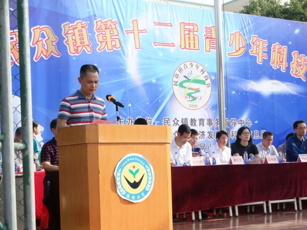 活动首先是各学校代表队向大会报到,接着镇教育事务指导中心黄海文主任致开幕词,他说“这是一个科技竞争的时代,在这个时代里,国与国之间的较量就是科技实力的较量。而一切科技成果的取得必须要有丰富的知识作坚实的基础,知识就是力量”并勉励大家,乘着“民众镇第十二届青少年科技节”的东风,从小树立爱科学、学科学、用科学的志向,努力创新,认真实践,增强素质,全面发展,为把自己培养成二十一世纪的科技型人才而努力! 紧接着中山市科学馆刘作聪副馆长致辞并代表市科协对科技节的隆重举行表示热烈的祝贺!