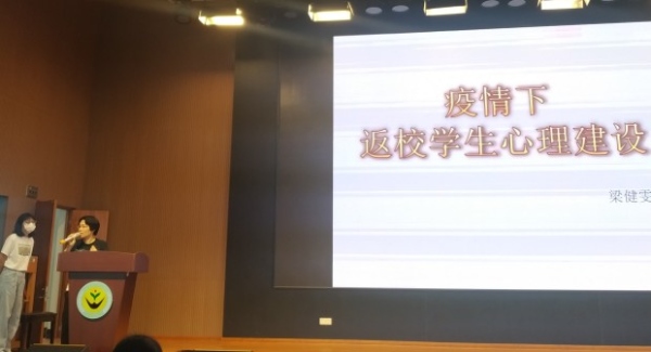 该校心理老师梁健雯老师为全体教师作题为《疫情下返校学生心理建设》的专题培训。