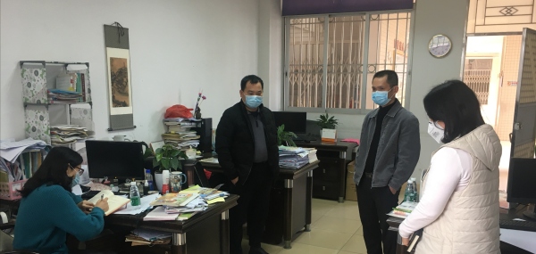 2020年2月3日下午,民众镇教指中心主任黄海文、副主任梁冬梅、田莱莉一行来到浪网小学督查浪网小学疫情防控及学校开学前准备工作。该校校长刘伟胜介绍了相关工作情况。总务主任林振波陪同汇报。