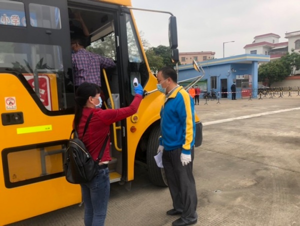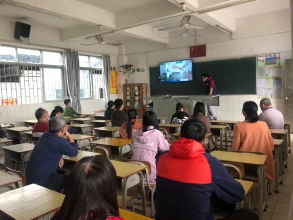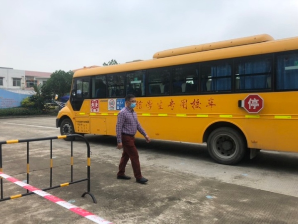 演练坚持“演练即是实战”的要求,落实落细各项措施。陆锐勋校长为本次演练的总指挥。本次演练分为7个场景。场景一:排队进入校门。24个班主任扮演学生,分2路纵队从刷卡口进入。场景二:监测体温,学生排成2路纵队,冯培有、吴宇恒、负责测量学生体温,体温正常方可入校。学生间隔1米排队依次接受检测;体温正常者直接回教室,不要停留。假如发现有学生出现发烧症状(体温37.3℃)值日行政马上请她到临时观察室休息,通知该班主任打电话叫家长把孩子送到民众医院发烧门诊部就诊。场景三:课室上课,学生到班后,班主任对学生询问“三史”,确认无异常后,前往课室准备上课。在上课期间发现学生提出身体不适,经简单询问和测量体温,如有发烧立刻打电话给梁兆元,曾国恒带学生离开课室,到临时观察室。对全班学生逐一进行体温检测,确认均无异常后,由上课老师带领学生由疏散专用通道离开,到备用课室上课。梁兆元通知消毒员对课室周边及专用通道进行消毒处理。场景四:临时观察室,吴文兴由专门通道将身体不适的学生带到临时观察区,用水银温度计进行腋下测量该生体温,发现确实偏高,立刻致电班主任并由班主任联系家长在校门口等候,接该学生前往民众医院看病。假如学生有呕吐,由曾国恒老师处理呕吐物。梁兆元通知消毒员对临时观察区进行消毒处理。场景五:学习 “七步洗手法”,1、所有班主任回教室坐好,由张容冰教大家学习“七步洗手法”。2、所有班主任扮演学生上厕所后洗手。场景六:学生上下楼梯,学生靠两边有序上下楼梯,间隔1米,后面的同学排队,间隔1米。场景七:学生上体育课,1、学生分批在教室门前排两路纵队,间隔4块地板砖,整理好队伍后有序的向运动场走去,接着第2批。