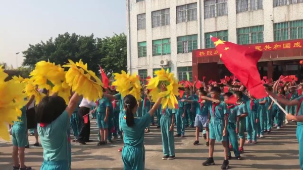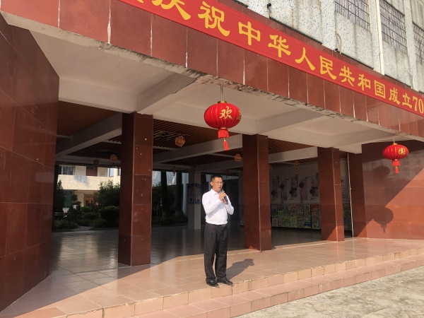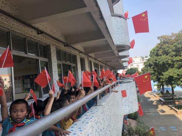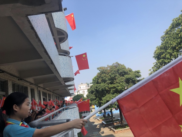 首先,全体学生站在教室门前齐唱《东方红》、《闪闪红星》,接着,全校师生齐聚操场,庄严肃穆地参加升国旗仪式。伴随着激昂有力的出旗音乐,四位护旗手护卫着鲜艳的国旗,步宇轩昂地大步向前走来。鲜艳的五星红旗徐徐升起,全场的学生伴随着乐曲唱起了国歌,歌声虽然稚嫩但依然嘹亮,主持人李老师表扬了学生们规范的升旗礼仪。随后,陆锐勋校长进行爱国教育,他说道,新中国成立以来,中国走到现在的繁荣富强实在不易,星空体育要不忘初心,砥砺前行,好好学习,长大报效祖国。紧接着,全体师生齐唱《我和我的祖国》和《歌唱祖国》,学生们积极挥动着手中的小红旗,张大嘴巴歌唱,表达着对祖国热爱以及赞美之情。最后,陆校长带领全体师生呼号“祖国万岁!”