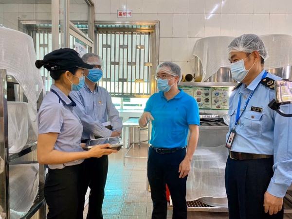 黄委员充分肯定了学校对复学及疫情防控所做的工作,认为学校工作十分严谨,考虑周全,工作细致。黄委员还特别强调,学校要高度重视校园食品安全,必须加强食品安全管理责任,落实到人,压实责任,确保学生在学校不出现食品安全问题。他要求学校要关心师生的身体健康,要多与承包商沟通交流,实时根据学生的营养需求,努力提高学生的膳食质量,坚决杜绝各种安全隐患,确保学校的稳定和发展,更好的服务广大师生。