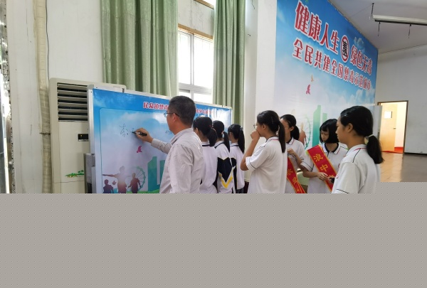 最后,张局长带领参与活动的全体成员进行禁毒宣誓,并与参会领导和学生代表进行拒绝毒品的签名承诺。
