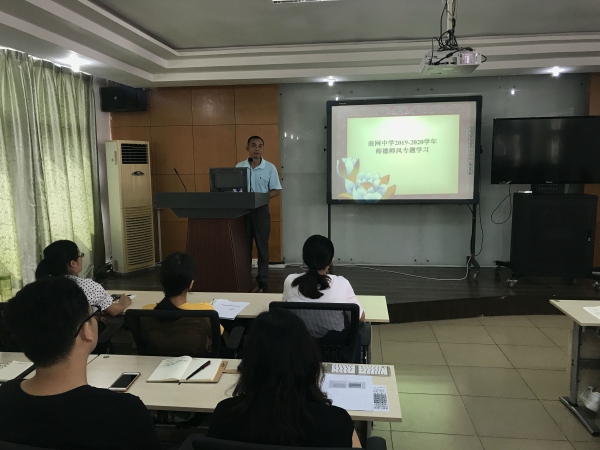 最后,德育处冯七胜副校长组织全体教师学习《中小学教师职业道德规范》,希望全体教师关爱学生,减轻学生负担,廉洁从教,切实做到以生为本,为提高学生核心素养,促进学生全面发展而努力工作。