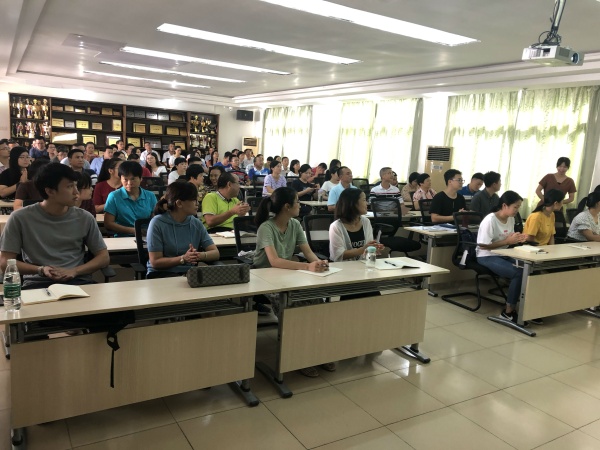 首先,老师们认真观看了中国人民大学国际关系学院副院长、中国人民大学中国对外战略研究中心主任金灿荣教授的《五千年的中华民族经得起百年未有之大变局的惊涛骇浪》专题报告。金教授重点从第四次工业革命的角度分析中国如何把握大变局带来的机遇和挑战。而针对当前中美经贸摩擦,金灿荣认为,表面上美国优势大,但从长历史角度来看,中国更具竞争力。