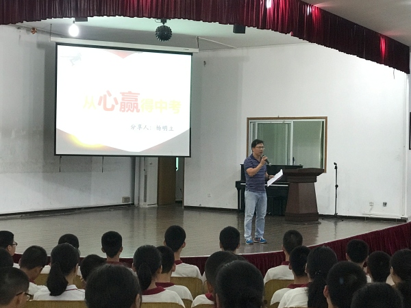 为了帮助同学们缓解焦虑情绪,以平稳的心态面对中考,浪网中学于2019年6月5日,特别邀请中山市家庭教育讲师团成员、东区远洋学校团委书记杨明立老师为参加中考的全体学生开展考前心理辅导讲座。