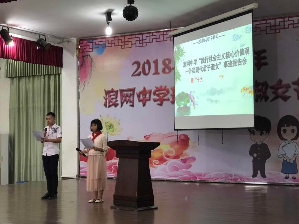 为充分调动广大学生争当现代君子淑女的积极性和主动性,争做“儒雅正直,君子气度;美丽端庄,淑女风范”的浪网中学君子淑女,2019年5月20日下午第八节,全体师生在阶梯教室举行“践行社会主义核心价值观--争当现代君子淑女”事迹报告会暨“十大现代君子淑女”评选活动。