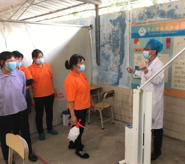 民众中学的初三学子已于4月27日顺利返校复学。为做好新型冠状病毒感染的肺炎防控工作,确保全校师生开学后的校园教学与生活安全、平稳、有序进行,4月30日,民众镇疾控中心黄良辉医生及民众社区防疫人员来到民众中学对学校食堂后勤人员、学校保洁员、学生宿舍管理员及相关工作人员进行了防疫消毒业务培训。