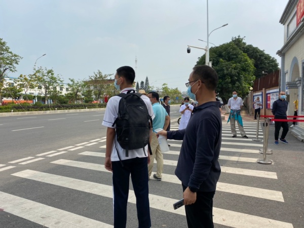 4月27日下午2点,第一批返校老师来到各自迎接返校学生的岗位,交通组、秩序维护组、消毒检查组、测温组、照看行李组按照要求有序展开工作。返校学生在老师们的引导下,按照划定通道划定点位,保持间隔1米距离进行体温检测、资料审查和物品消毒后陆续进入校园。整个过程学生之间不并排前行、不进行交谈,做到路线不交叉、人员不聚集。