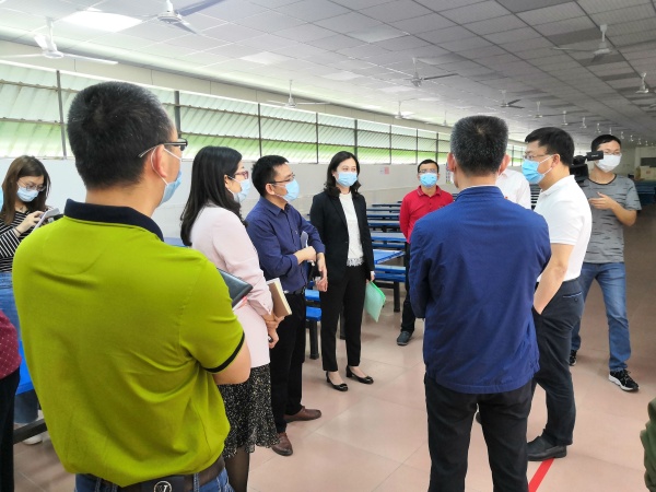 在民众中学全体行政成员的陪同下,督导小组对民众中学当下的防疫配套设施的装配、使用情况进行了详细的询问。同时,深入学生教室、食堂、宿舍、医务室、隔离观察室、物资储备室等重点场地,实地检查卫生消毒、临时观察点设置等防疫措施落实情况。查看教室卫生是否合格,桌台距离是否隔到一米以上;物资储备室里的物资是否足够,标准是否符合等,督导小组并与各负责人进行现场交谈,听取学校开学复课准备、疫情预案制定、防疫物资配备等情况介绍。