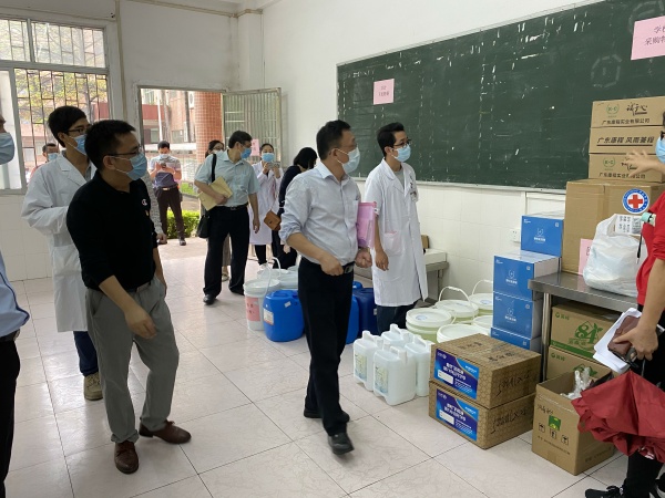 民众中学2020年春季开学在即。为了切实做好复学前各学校的疫情防控工作,4月22日上午,中山市教育工委廖诚、市教体局科长黄庆财、市疾控中心科长谈晔和市市场监管局赵影到民众中学,对新冠病毒疫情防控及开学准备工作进行了督导检查。