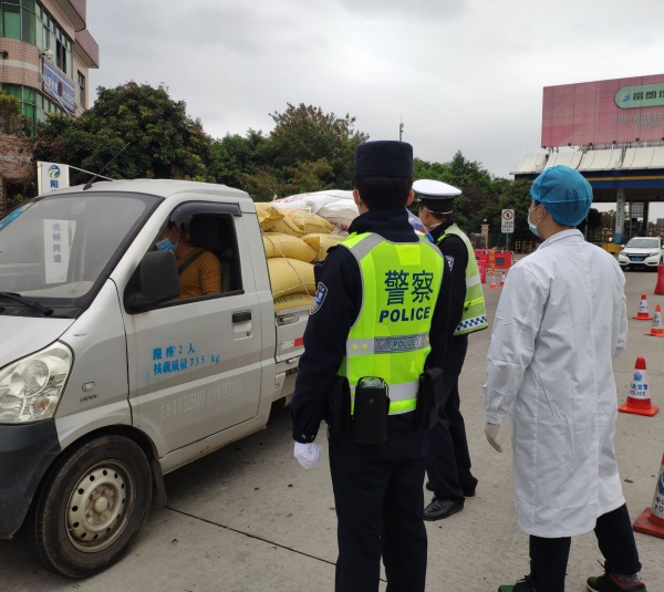 病毒无情人有情。检查疫情的警察和医护人员感谢民众中学的慰问之后,又马上投入到阻击疫情检查中去。