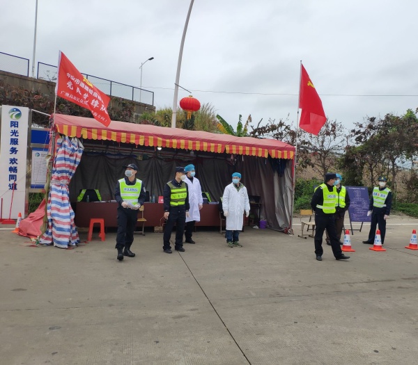 2月6日早上,民众中学志愿者在校长胡留全的带领下前往民众镇浪网高速路口慰问正在检查疫情的警察和医护人员。