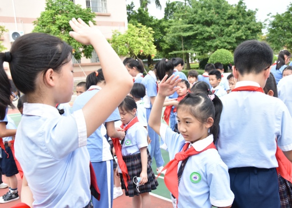 为培养学生主人翁意识,少先队员的光荣感和责任感,在2020年“六一”儿童节当天上午,中山市民众锦标学校举行了一年级少先队新队员入队宣誓仪式,本次一年级共有李君杰等210位新队员光荣地加入了中国少年先锋队。在举行少先队入队仪式前,锦标学校少先队员代表向抗击疫情及返校复学工作中付出辛勤劳动的卫生健康副校长林小灵、驻校医生高晓颖两位医务工作者敬献了鲜花,以表感谢。