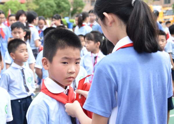 据悉,本次一年级共有李君杰等210名新队员正式成为光荣的中国少年先锋队队员。学校相应的也新成立了7个中队,它们分别是:一(1)中队、一(2)中队、一(3)中队,一(4)中队、一(5)中队,一(6)中队,一(7)中队。本次活动新队员代表发言的是一(2)中队的李君杰同学,六(7)中队的朱佳睿同学为老队员代表发言。新老队员的发言都有一致的共同点:“从小就要立志向、有梦想,爱学习、爱劳动、爱祖国,德智体美全面发展” ;“从小学习做人、从小学习立志、从小学习创造” ;“热爱党、热爱祖国、热爱人民,努力成长为有知识、有品德、有作为的新一代建设者” ;“今天做祖国的好儿童,明天做祖国的建设者”。本次活动在队员们幸福、灿烂的笑脸中圆满结束。