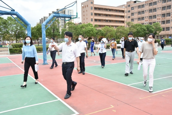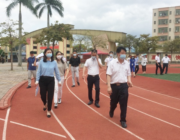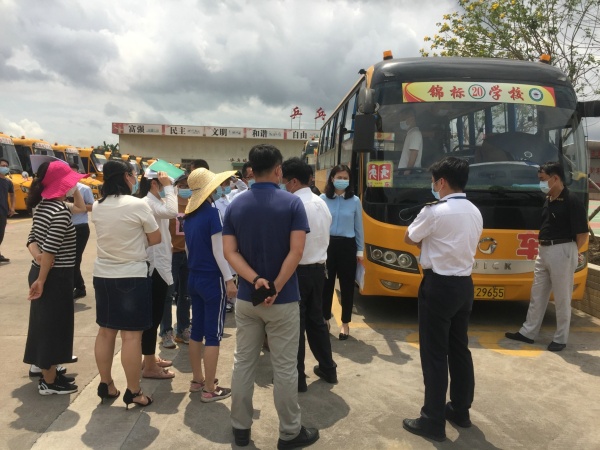 2020年5月7日上午,在民众镇党委刘钊妍委员的带领下,民众镇2020年春季学期第二第三批学生返校复学条件核验组一行20多人来到锦标学校进行复检工作。核验组由镇教育事务指导中心、镇疾控中心、镇市场监管局等相关领导组成。民众镇教育事务指导中心黄海文主任、田莱莉副主任等陪同检查。锦标学校黄元感校长带领学校全体行政及相关人员迎接检查。