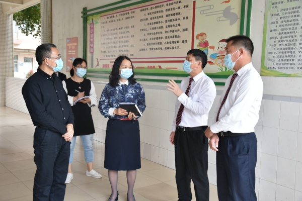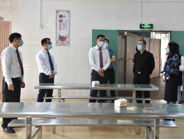 4月26日下午,民众镇镇长黄声群来到锦标学校检查学生返校复学准备工作,民众镇教育事务指导中心副主任梁冬梅、钟伟云老师等陪同检查。