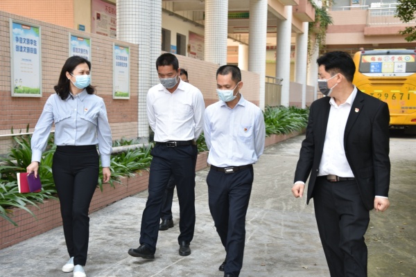 4月15日上午,民众镇党委刘钊妍委员在镇教育事务指导中心黄海文主任的陪同下来到锦标学校检查督导疫情防控和开学准备工作。