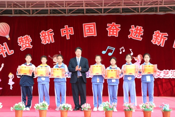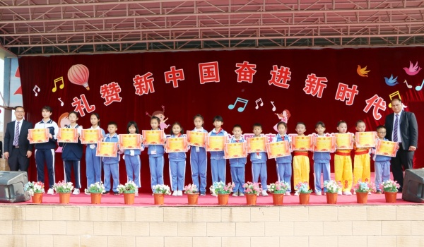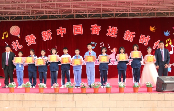 为了表彰在本次艺术节中取得优异成绩的优秀个人并充分展示学校的艺术教育成果,锦标学校以“庆元旦,迎新年”为活动契机,举行了以“礼赞新中国,奋进新时代”为主题的师生文艺节目展演。在文艺节目展演前,学校黄元感校长向全校师生及家长们致以了新年的祝福,希望大家在新的一年里收获新的梦想。黄校长致辞结束后,学校全体行政为在第十四届校园艺术节系列活动中获奖的学生代表进行了表彰颁奖。随着6位小主持人共同宣布:“锦标学校庆元旦文艺汇演现在开始”后,由小学低年级组学生表演的鼓舞《中国范》正式拉开了本次文艺展演的序幕,由师生们共同演艺的10个精品节目轮番上阵,内容丰富、精彩纷呈,看得台下所有学生及家长们掌声阵阵。
