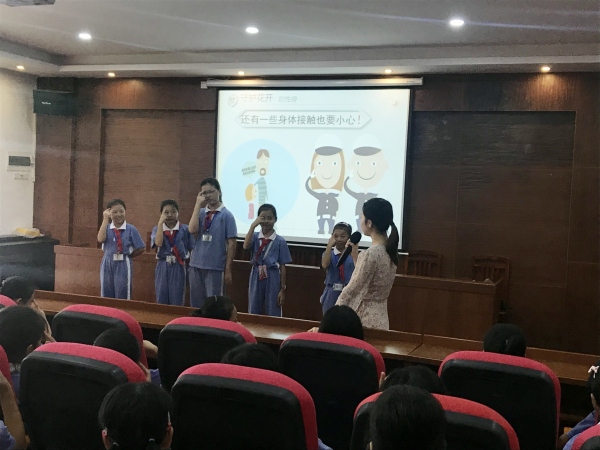 10月24日中午12:30,中山市民众锦标学校专职心理老师吴洁桐老师在科学楼多媒体会议室为五年级女生开展了主题为《守护花开》的专题讲座,主题内容是关于青春期暨防性侵教育的相关知识。
