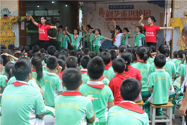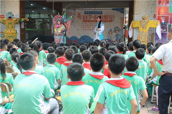 为了贯彻落实党的十九大精神,大力弘扬传统戏曲文化,进一步加强对传统戏曲文化的保护、传承和发展,香山粤剧团将粤剧艺术送进校园,开展对学生进行戏曲文化教育活动,让学生感受岭南戏曲文化的艺术魅力,同时加深对粤剧的认识,开阔学生视野,陶冶情操,2019年5月16日上午,广东香山粤剧团的艺术家们走进了中山市民众新徽学校,为师生们带来一场精彩纷呈的视觉盛宴。