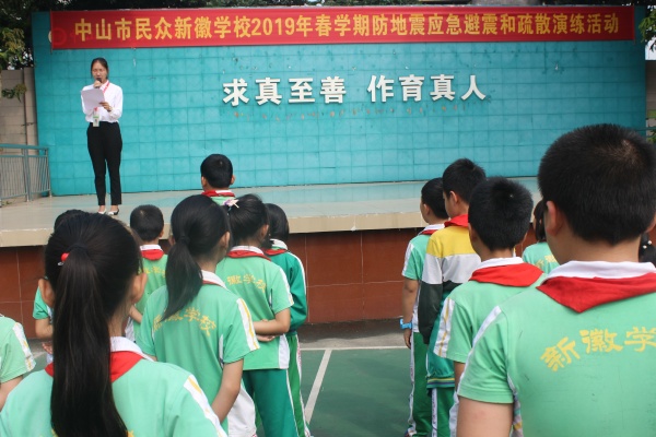 中山市民众新徽学校召开2019年春学期防地震应急避震疏散演练活动发布时间:2019-05-14 10:54 信息来源:本网站 浏览次数:9