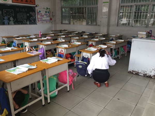 演练前学校制定了详细的演练方案,并由各班班主任给学生讲述应急避震的保护措施和震后自救知识,特别强调了在家中、在学校如何防震避震的知识。其后政教处陈七灵干事再次强调了演练的相关要求,告诉学生在疏散时不要慌张,不要推挤,要严肃,要当作是真的地震发生,而不是游戏,要在教师的引导和统一指挥下有序疏散。